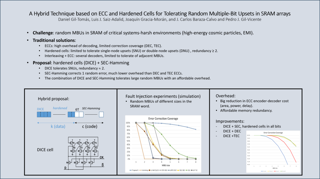 The paper entitled “A Hybrid Technique based on ECC and Hardened Cells for Tolerating Random Multiple-Bit Upsets in SRAM arrays”, written by Daniel Gil-Tomás, Luis J. Saiz-Adalid, Joaquín Gracia-Morán, J. Carlos Baraza-Calvo and Pedro J. Gil-Vicente is now available at IEEE Access.